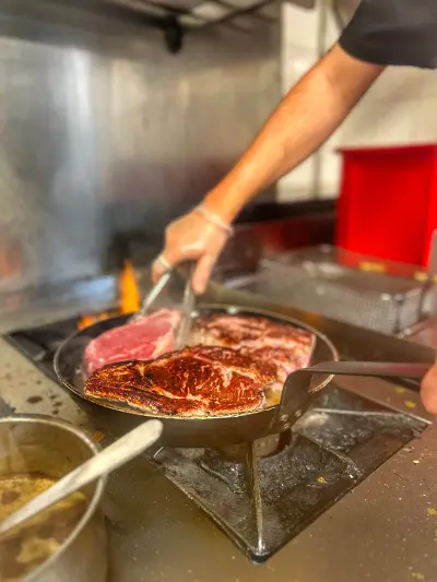 Au Vestiaire, on aime partager : de belles pièces à déguster, des plats à la braise, des assiettes créatives et faites maison. Une cuisine généreuse, sincère, pensée pour rassembler. L’ambiance est conviviale, décontractée, portée par un vrai esprit guinguette.